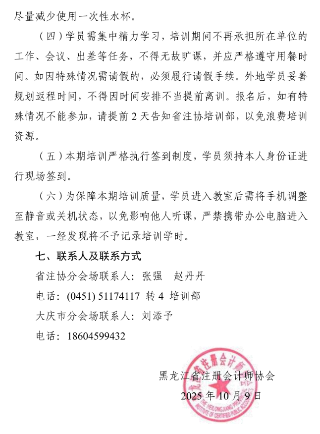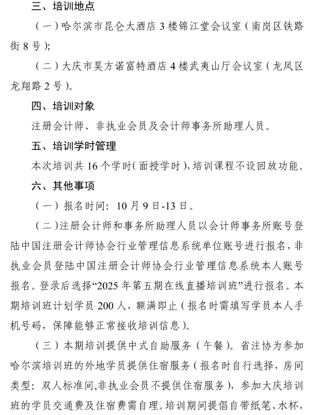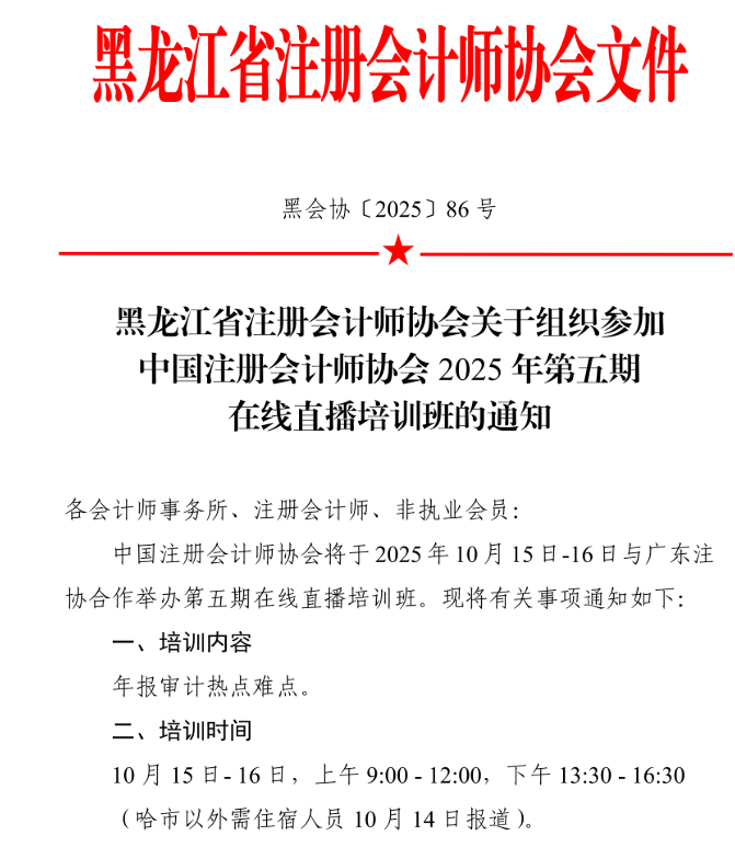 黑龙江省注册会计师协会关于组织参加 中国注册会计师协会 2025 年第五期 在线直播培训班的通知